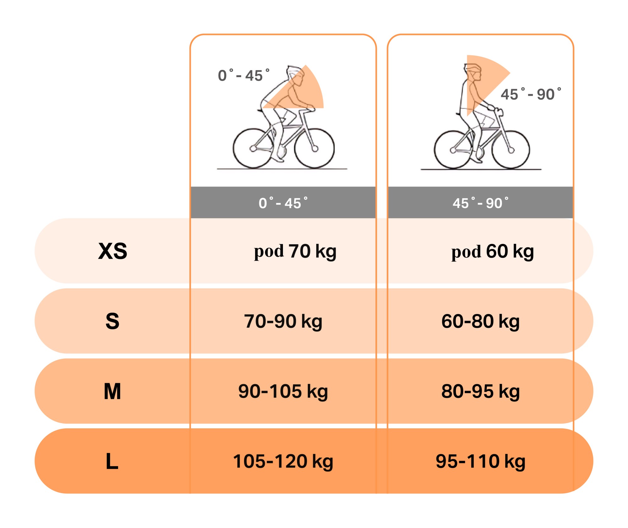 Níže uvádíme orientační tabulku s přehledem tělesné hmotnosti a odpovídající tuhosti tlumiče. Pro sportovnější jízdu však z vlastní zkušenosti doporučujeme vybrat o stupeň vyšší tuhost. Pokud potřebujete s výběrem tuhosti poradit, kontaktujte nás telefonicky na 775970171. Rádi Vám poradíme.